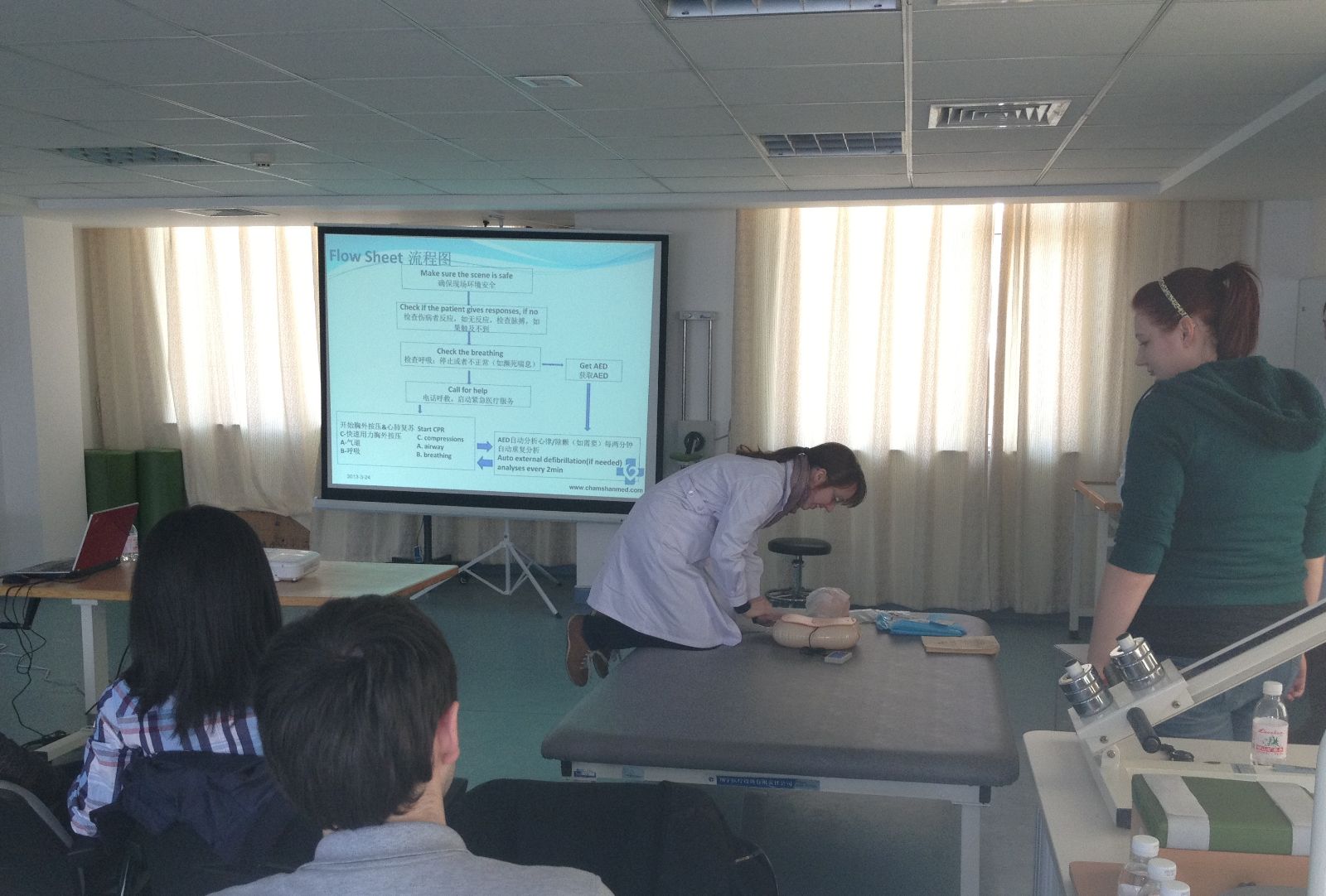 On March 24, 2013 Cham Shan Int’l Medical Center held a CPR training class for the staff and interns of InternChina. Medical professionals presented the meaning, applicable situations, the emergency process and the guideline of CPR in great detail. Everyone participated in a practical demonstration and asked further questions. The atmosphere during the training was active as doctor and students shared their experience and discussed the meaning and procedure of CPR. The training lasted for 2 hours. All interns said they learned a lot and expected that they would have more medical training in the future.